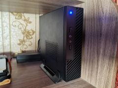 Материнская плата взята самая дешёвая, что была на данный сокет формата mITX. 8 гигабайт оперативной памяти DDR4 с Ali, также самый дешёвой SSD SATA накопитель на 120 гигабайт, что был, который совместим со слотом M2, под систему. Корпус очень интересного внешнего вида на удивление дешевый и качественный. К такому корпусу нужен Pico PSU блок питания. Это преобразователь с 12 вольт на стандарт питания ATX. И внешний блок питания на 60 ватт 12 вольт.