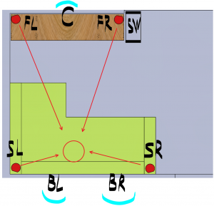 Основной принцип построения или поставления излучателей — это как можно дальше от стен. По-хорошему, колонка должна находиться не в углу, сзади 1 метр до стены.